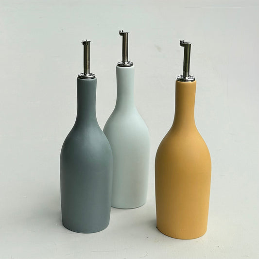 Ceramic Olive Oil Bottle with Pourer - Grey