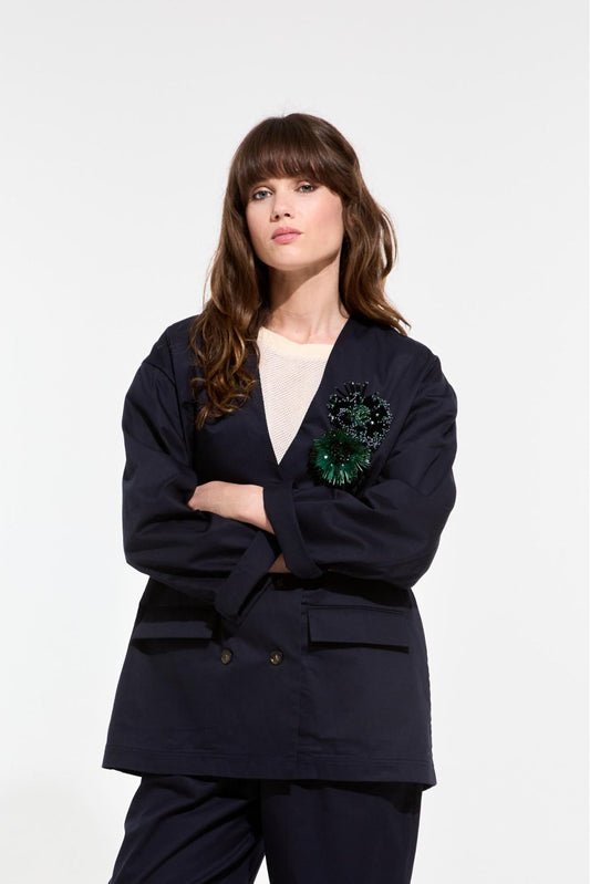 Embroidered Anemone Brooch - Black