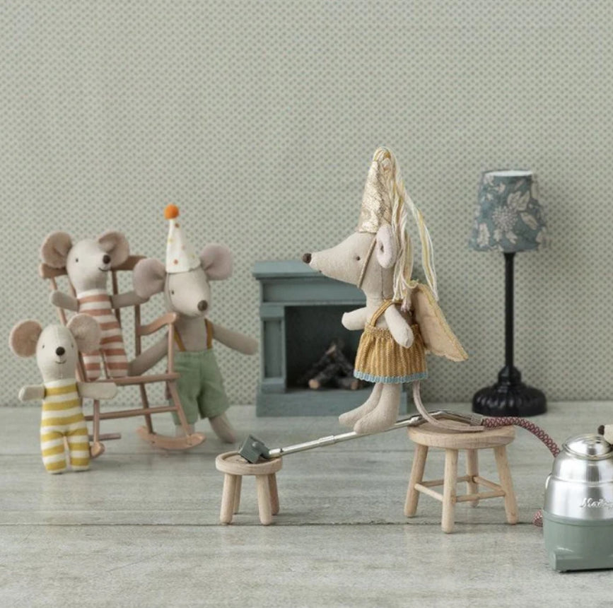 Baby Mice Triplets, a delightful set of three tiny mice snugly sleeping side by side in their matchbox bed. Wrapped in a cozy sleeping bag, these little friends are perfect for all baby mouse accessories. Measuring 8 cm tall and crafted from soft cotton with recycled polyester filling, they're ready for gentle play.