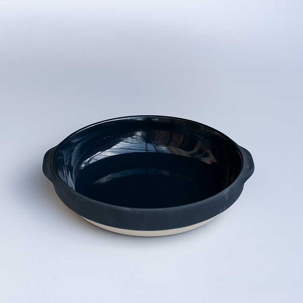 This deep, ink blue, microwave and dishwasher safe oven-to-table dish will elevate even the humblest baked eggs to something extra special. Manufactured in France using a locally soured stoneware clay, which has exceptional heat conduction properties, it is both microwave and dishwasher proof and will bring years of pleasure (and French style) to your table.