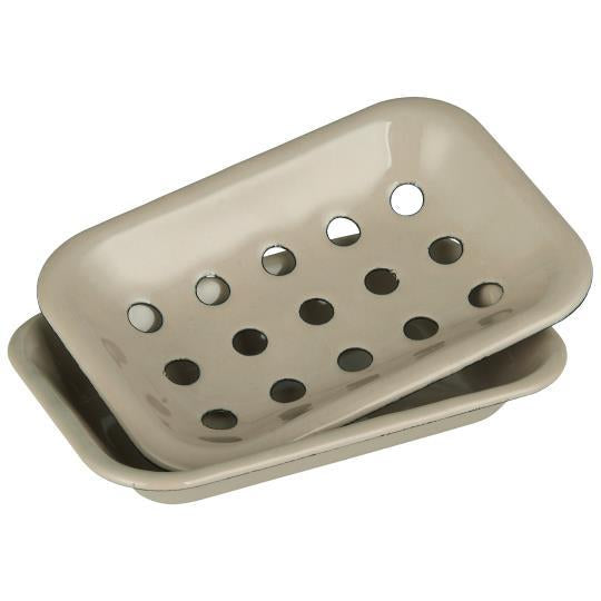 This enamel soap dish with a lift out top (so your soap doesn't get water logged) means business, but chic, simple, utilitarian business. it goes without saying white is the classic choice for a bathroom and this iteration has a sleek modern minimalist feel.
