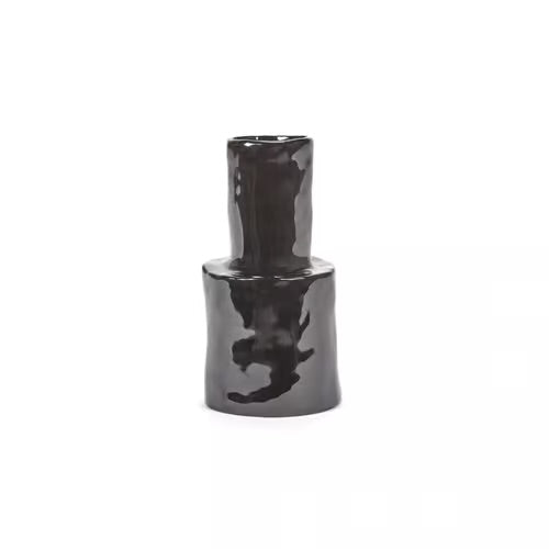 The Héléna vases, in dark brown (almost black) sandstone, represent the first foray of Belgian artist Marie Michielssen into ceramics. Those who are familiar with Marie's work know that she likes to let her hands lead the process. On this topic, she's previously said that the repetitive nature of the actions use in modelling with plaster and papier-mâché meant that it was like meditating for her. The switch to ceramic thus wasn't a big change. The Héléna vases have simple, cylindrical shapes, where the irregular shape of hand-modelling are clearly marked. Marie Michielssen has a preference for materials that she can mould by hand. She allows herself to be guided by her intuition, to give shape to items with an atypical and poetic look