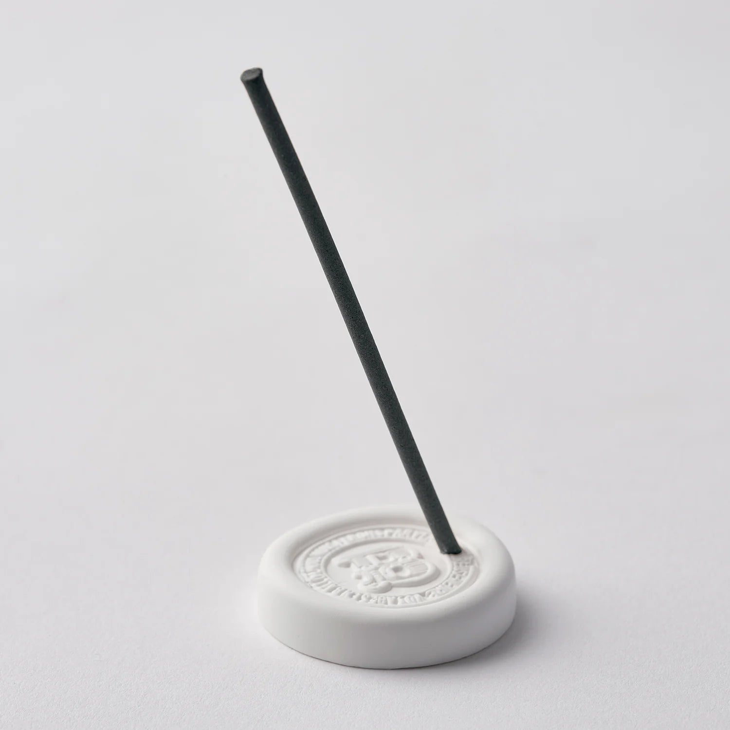 Light the tip of the stick incense with a match or lighter. When you see that the tip is red and burning, turn off the flame and let the smoke rise. When the smoke has risen, gently insert the incense into the hole of the included incense holder.