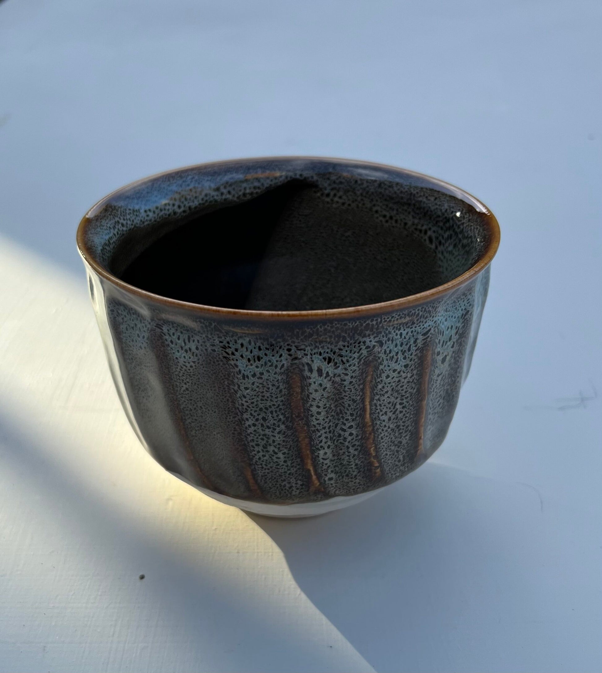 Straight sided, ribbed stoneware serving bowl handmade in France