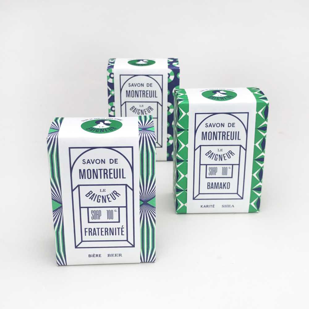 Le Baigneur soaps are handmade in Paris in small batches using a traditional ‘cold process’ method. Because the plant oils and butters are not heated they maintain their nourishing properties superbly and the naturally produced glycerine which results from this ‘cold process’ method is completely retained in the soap (7-8%). Consequently the soaps all have very gentle, emollient cleansing properties - never leaving your skin feeling tight or dry and are particularly kind to your skin’s hydrolipidic film. The scents are all subtle, complex and lovely (We’ve tried them all!).