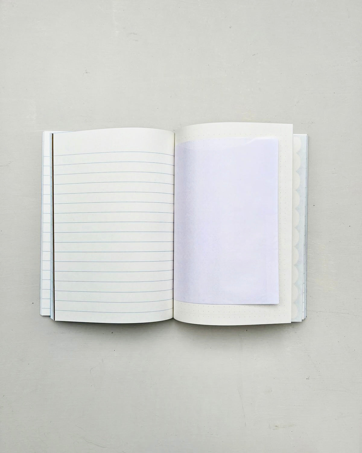 Contains an assortment of plain and lined pages, with kraft envelopes and pockets sewn into the binding, allowing for plenty of room for writing, sketching, collaging, and collecting.