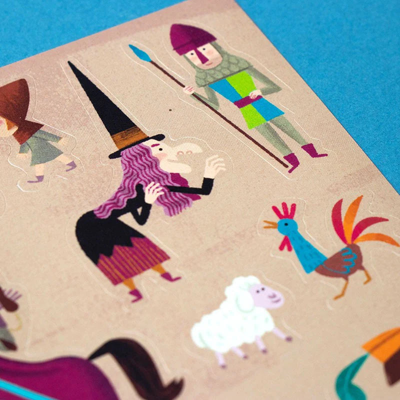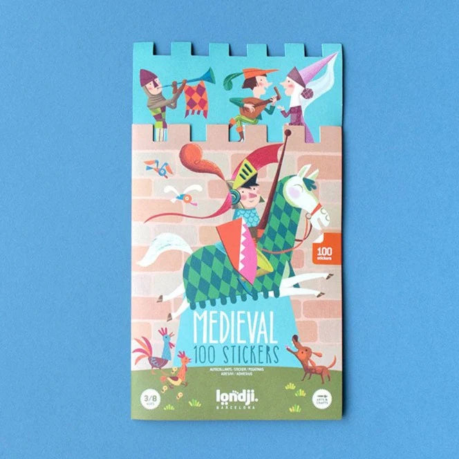 A set of 100 removable stickers from the Middle Ages with different characters for you to build the scene you like best!
