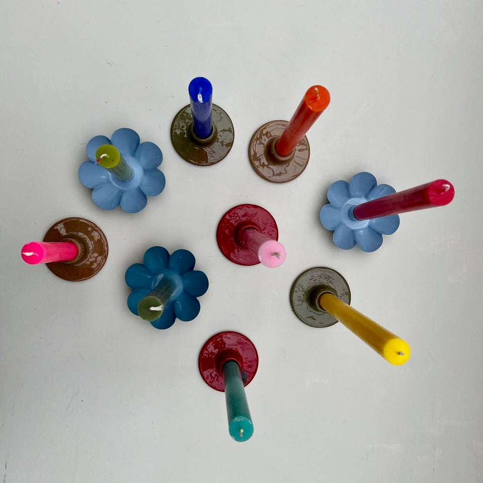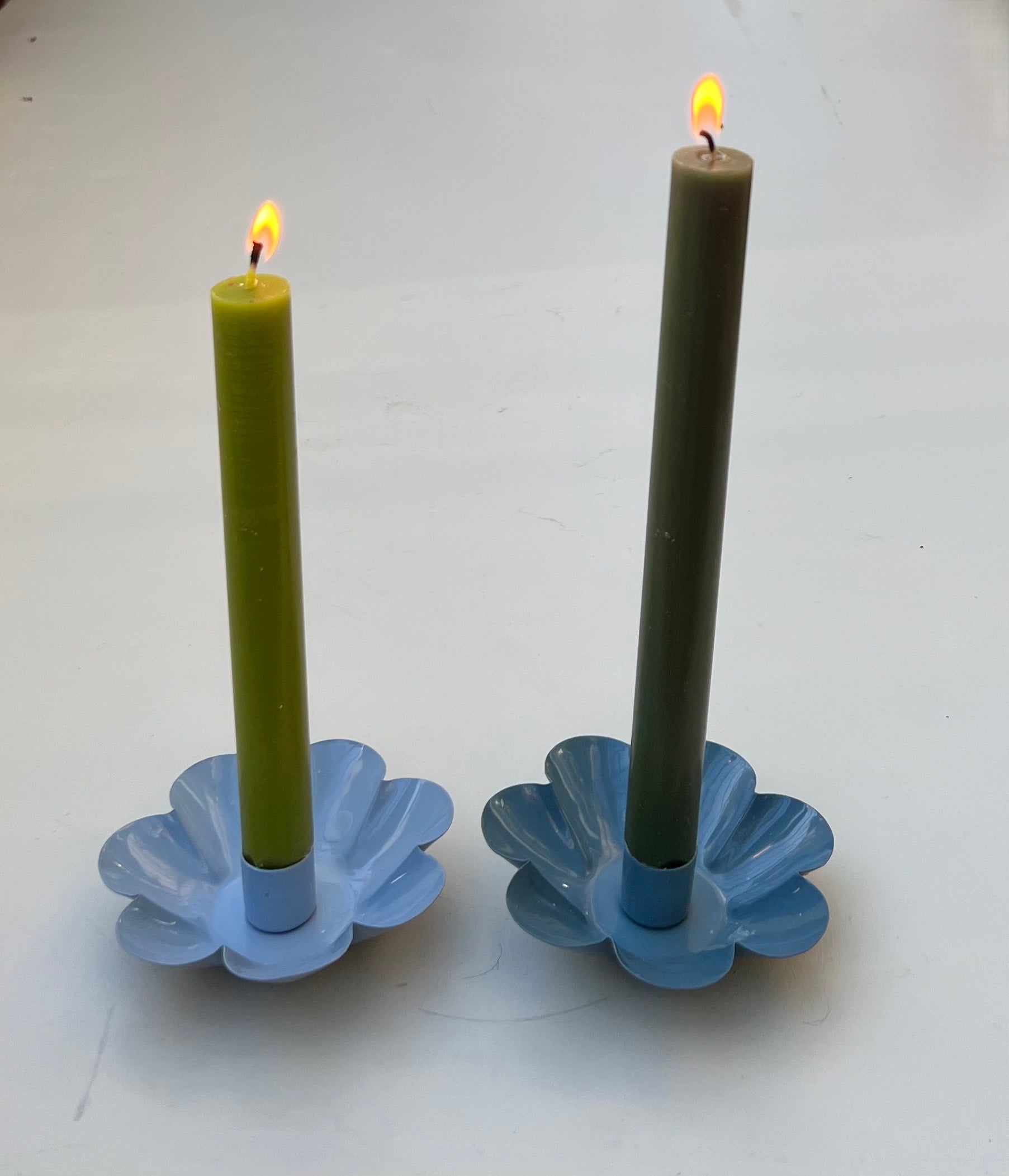 The fluted flowery looks great singly, in pairs or mixed with other simpler candle holders