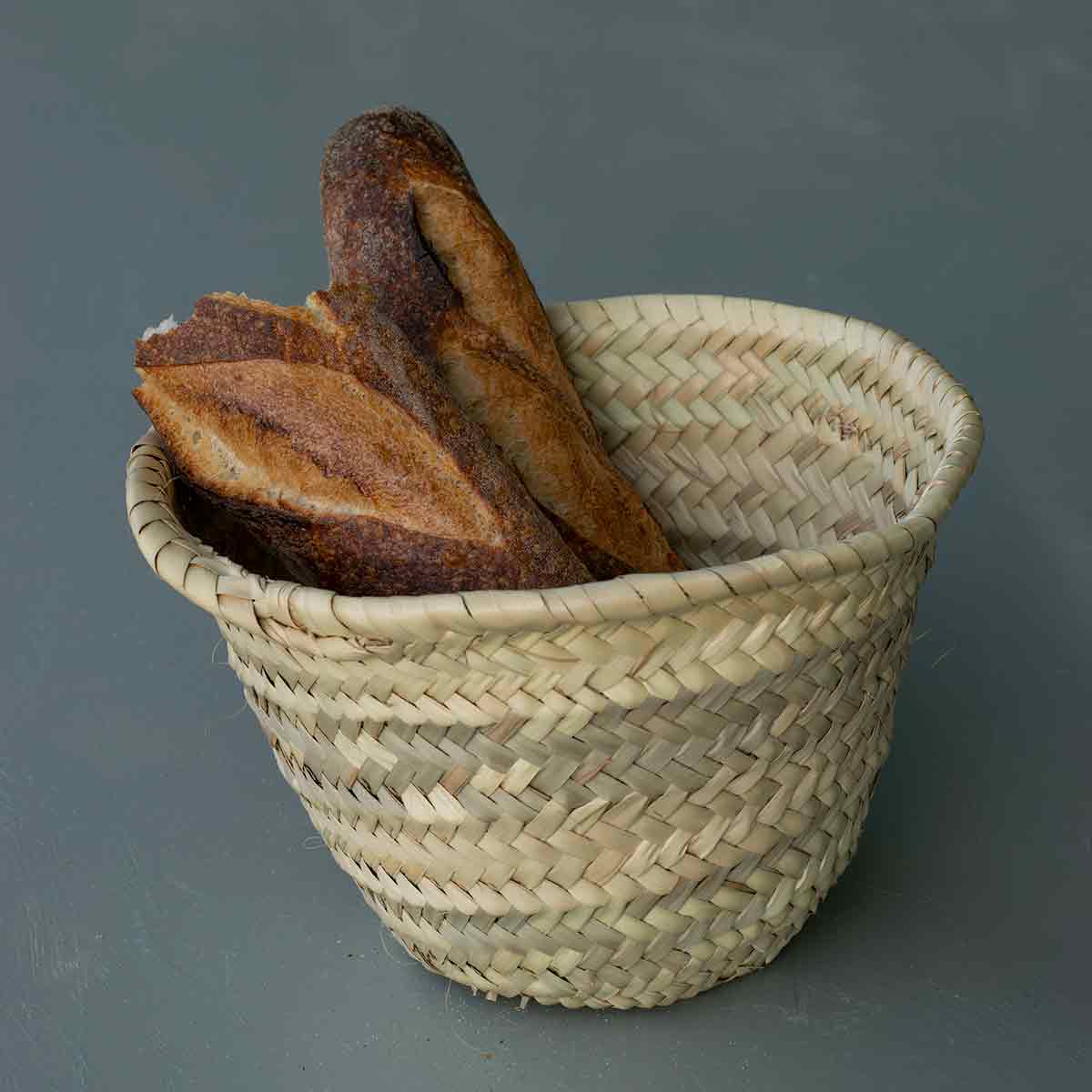 At PASCALE we are all about craftsmanship. This range of lovely, fair-trade baskets are handmade in Morocco using palm leaves. We had this cute little conical basket specially woven for us to our specifications. Based on a vintage bread basket found in a Bordeaux about 20 years ago this an incredibly useful little basket that can be used literally anywhere. We’ve seen them in laundry rooms for pegs, bathrooms for hairbrushes, as a place to keep gloves and kids tights and of course as a simple, stylish breadbasket too.