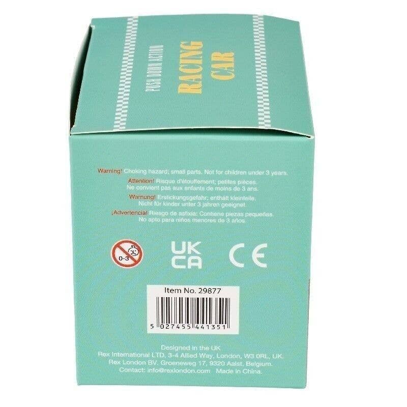 No batteries required! • Press down on the driver's head to engage the friction motor and send the car racing! • Not for children under 3 years.