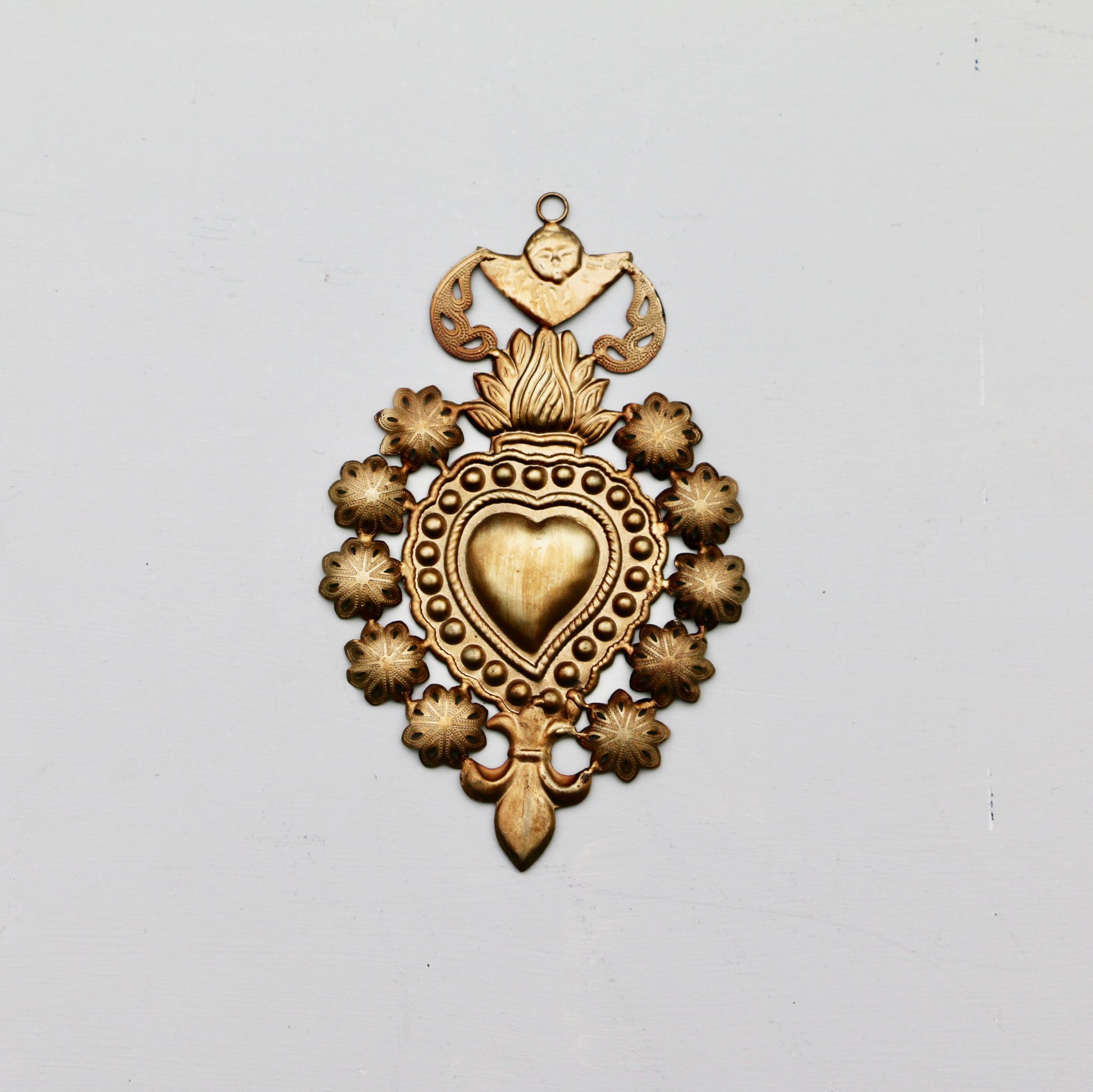 Beautiful Sacred Heart Ornament made of brass - it looks pretty dramatic and extremely decorative