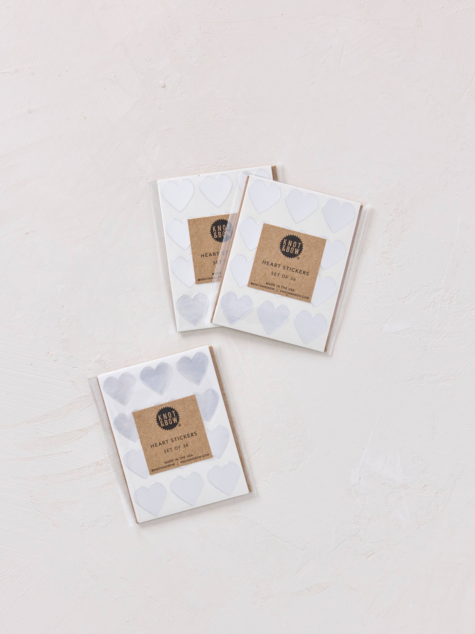 Thirty-six heart stickers to press and stick anywhere you need a pop of sweet color or a dash of charm. Excellent for decorating gifts, notes, letters, envelopes, scrapbooks, and more! Details: 36 stickers, 3 sheets of 12 stickers, ¾" in diameter, Made in USA and assembled with love in Brooklyn.