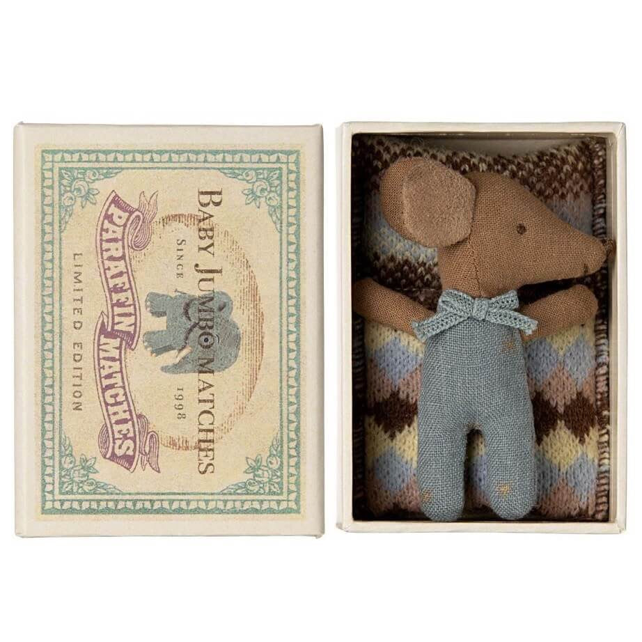 Sleepy Wakey Baby Mouse in Matchbox - Blue