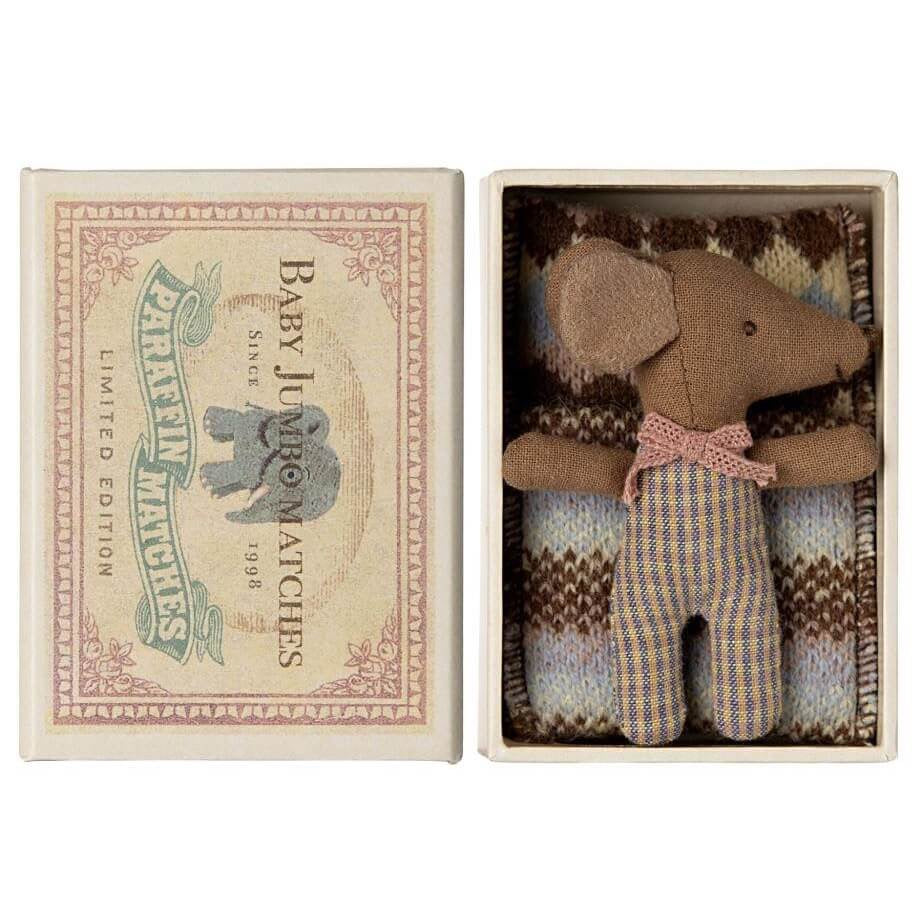 Your little ones will love this sweet Sleepy Wakey Maileg mouse in a matchbox.