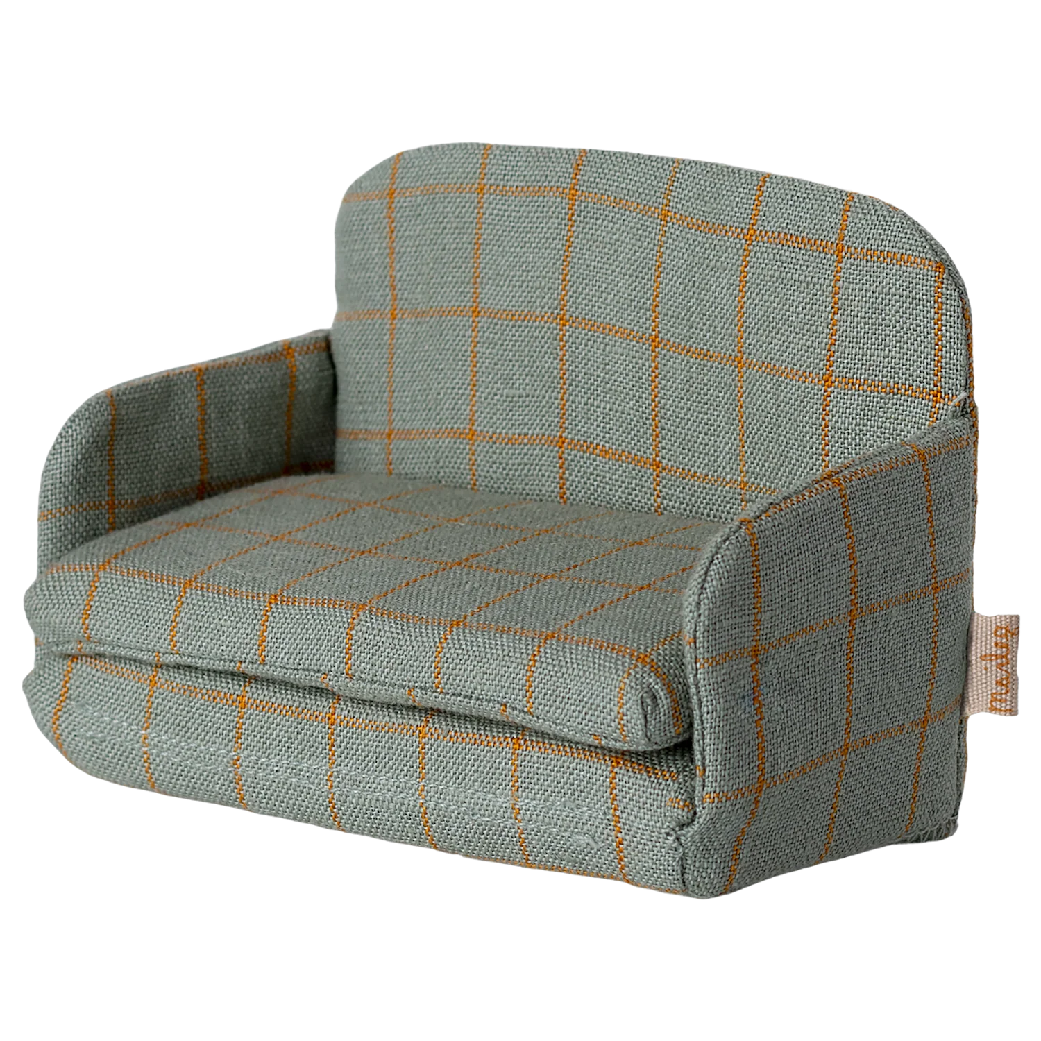 Suitable for ages 3 and up, it measures 8 cm high, 11 cm wide, and 5 cm deep. Easy to care for with hand washing at 30°C. Filled with polyester for extra softness and fun! checker-patterned linen, it adds a warm, vintage feel to any Maileg dollhouse.