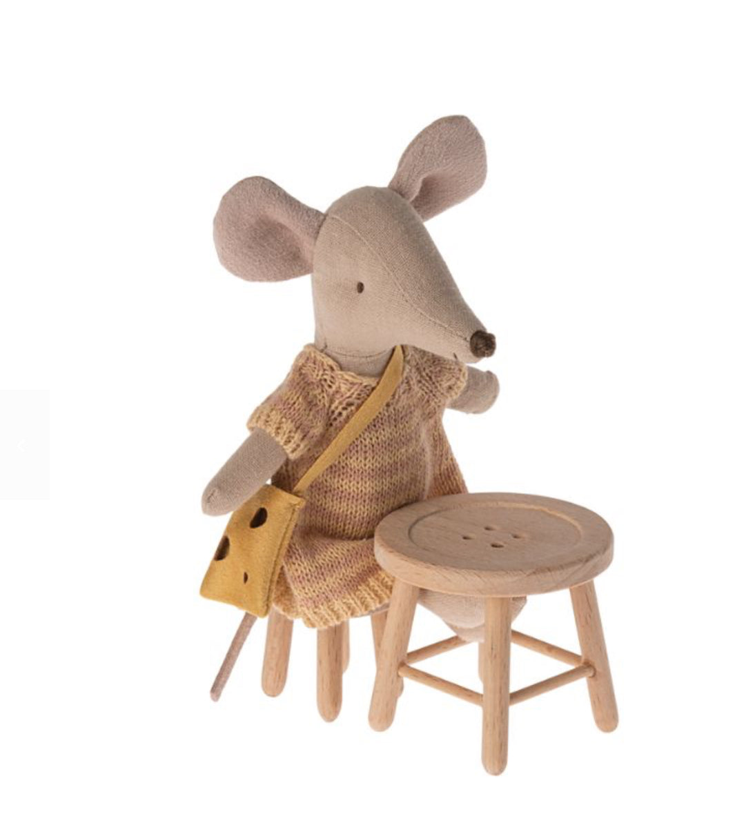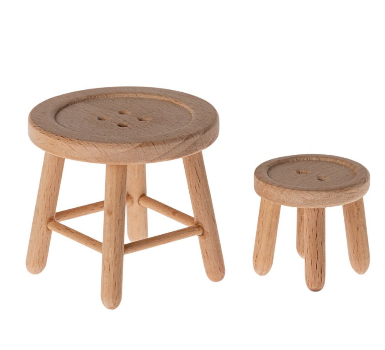 This little table and stool set for mice is absolutely adorable. Both the table and stool have a button design top, making them too cute for words! These fit perfectly in your Maileg Castle or similar mice houses and will make a lovely additional feature to their home.
