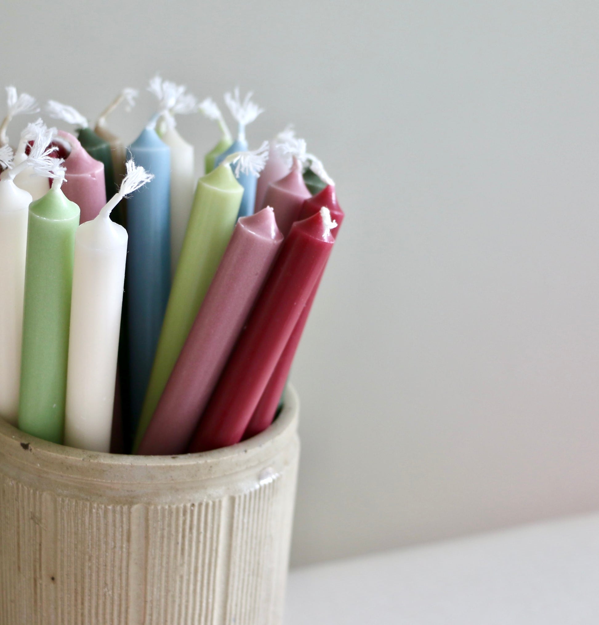 Set the mood with our selection of perfectly sized tapered candles. A selection of colours from subtle to bright tones, perfect for a cosy evening or to add to your table top when entertaining. They also make a lovely gift where you can mix and match, or even pair it with a lovely Pascale candle holder!