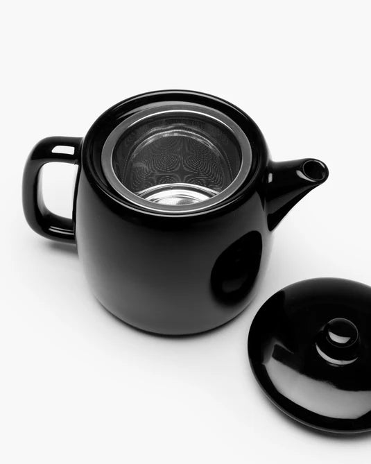 Beautifully proportioned it is made of hard-wearing porcelain with a superb ( we think peerless) internal metal stainer which is roomy, with a very fine mesh that never clogs - it works absolutely brilliantly. It's a Pascale classic and if you are feeling very stylish you can get handle-less cups to match.