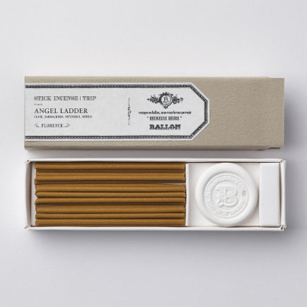 Angel Ladder has gentle hints of clove, sandalwood, patchouli and neroli. Each pack comes with 20 incense sticks and an incense stand. Burn time is 25 minutes.