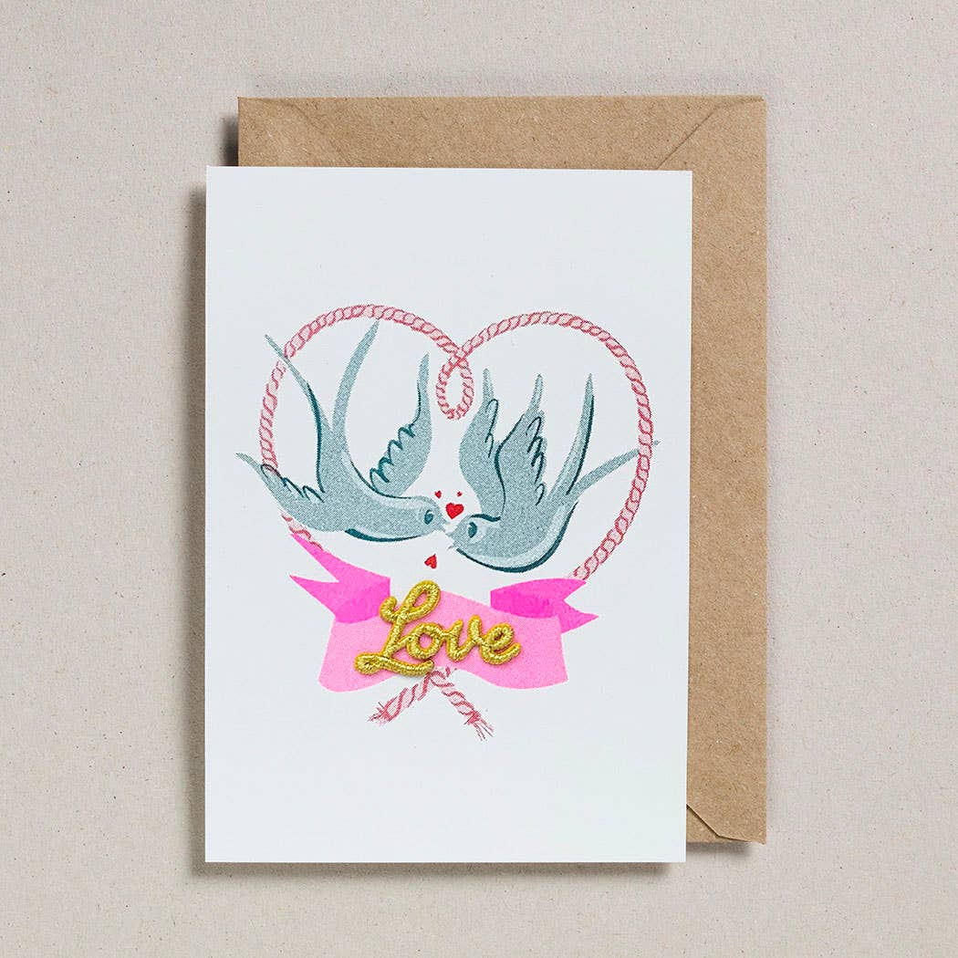 Each card is a unique riso print using soy based inks. Please note the fluorescent colours do not show up well in photography. Blank inside for your own message. 105mm x 150mm