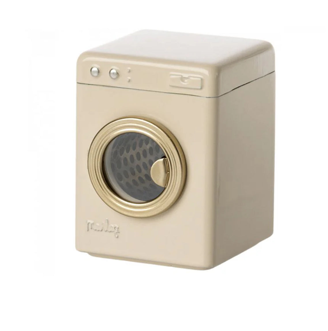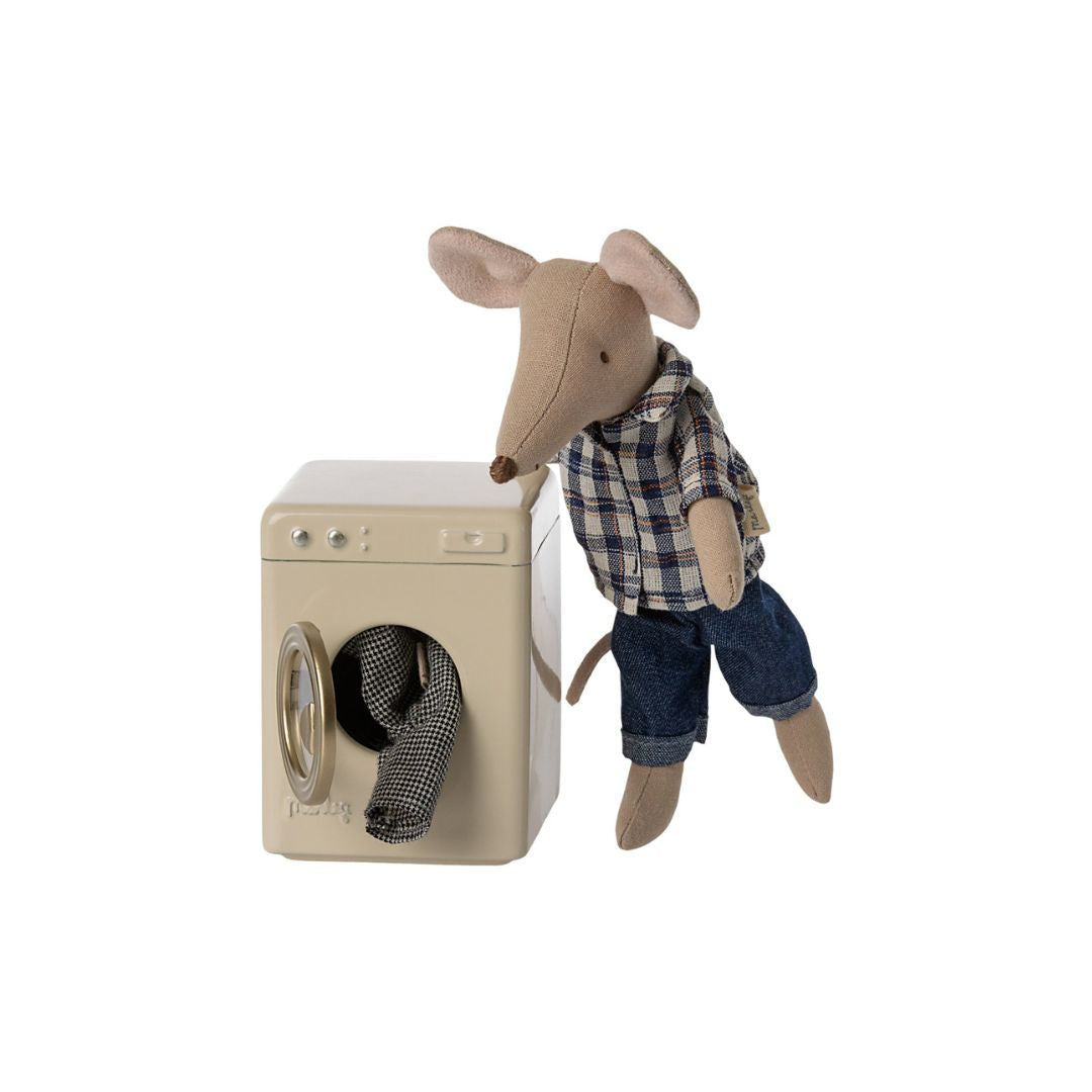 Bring laundry day to life with this adorable Maileg Washing Machine, perfectly sized for your Maileg dolls house. Standing 8.5 cm tall and crafted from durable metal, it makes cleaning doll clothes a fun and imaginative task. Ideal for children aged 3 and up, it’s easy to keep tidy with a simple surface wash.
